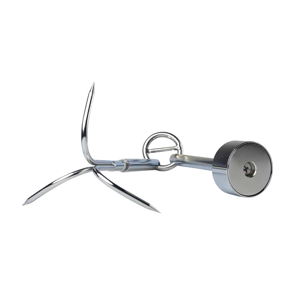 Soms krijg je met een vismagneet niet voldoende grip op een vondst. Een dreghaak van Magnetar biedt dan uitkomst. Laat de dreghaak voorzichtig zakken en probeer het achter de vondst te haken. Trek vervolgens de vismagneet en de dreghaak gelijktijdig omhoog.