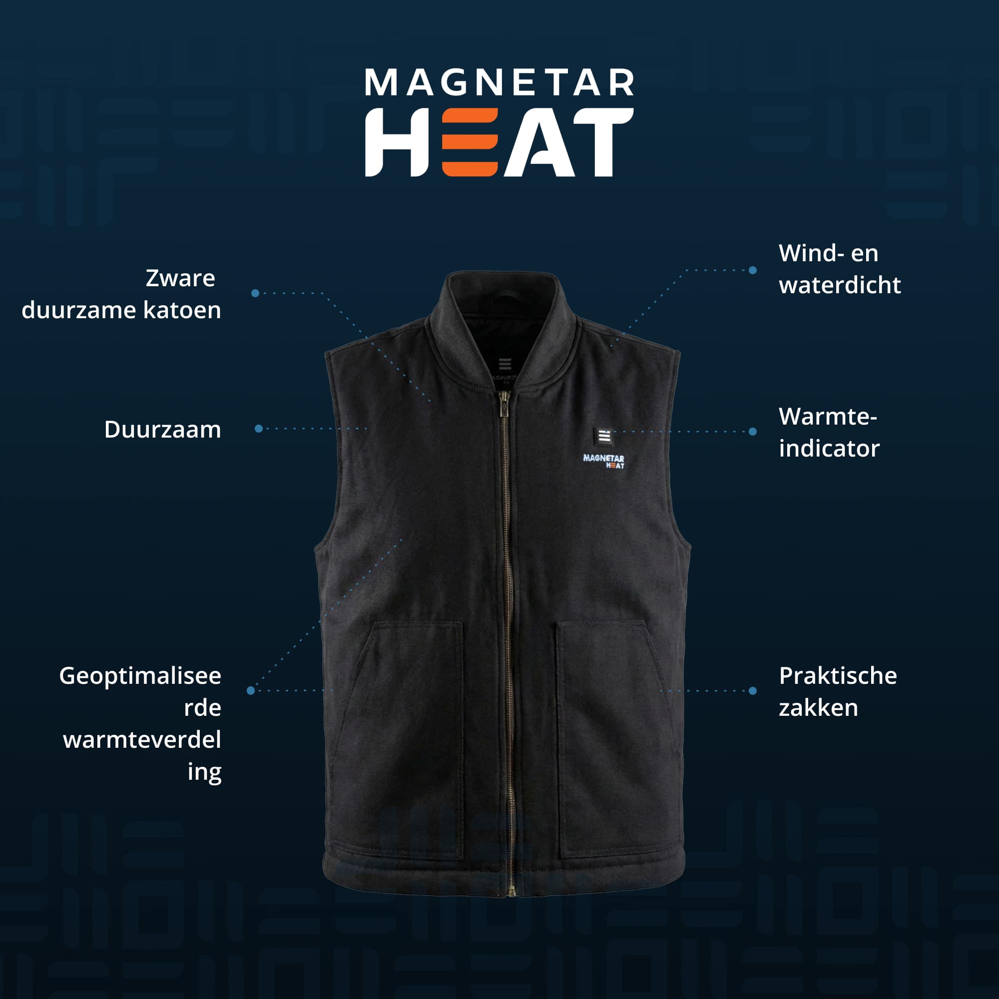 De meegeleverde batterij heeft het formaat van een mobiele telefoon en kan u tot 9 uur warm houden, afhankelijk van de warmte-instelling. De jas wordt geleverd inclusief batterij en oplader. De werkjas is gemaakt van wind en water resistent katoen en de binnen voering is gemaakt van makkelijk schoon te maken nylon materiaal. In deze werkjas heeft u volledige bewegingsvrijheid tijdens uw werk. Met deze jas hoeft u uzelf niet met meerdere lagen kleding in te pakken, bijvoorbeeld wanneer u werkt op de boerderij, als stratenmaker, in de bouw, als schilder, op de paardenranch, in de jacht, als tuinman etcetera. Het is een werkjas die een hoog comfort en volledige bewegingsvrijheid biedt.